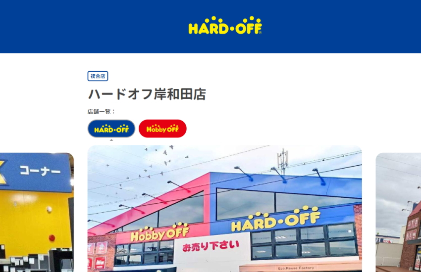 ハードオフ岸和田店は、オーディオ、ビジュアル、パソコン、楽器、ゲーム、トレカ、おもちゃ、工具、ジャンク品など、幅広い品目を取り扱うリユースショップ「ハードオフ」の店舗です。